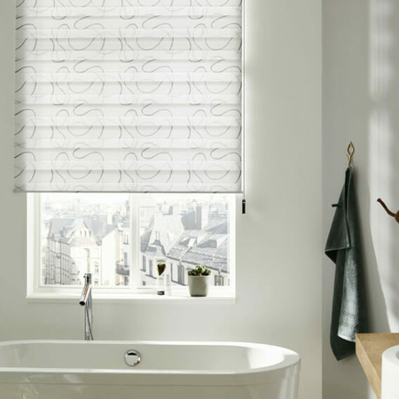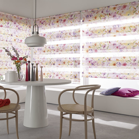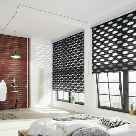 A legmodernebb belső árnyékoló a piacon. Egy szerkezettel tuduk megoldani a nappali fénybeengedést belátásgátlással valamint az esti sötétítést. A mintás verzióval nem csak vízszintes sávok közül választhatunk, hanem különféle formák is szóba jöhetnek, természetesen mindegyik többféle színben.